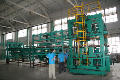 2、成形部分,大臺面成形壓機及地毯成形模具。